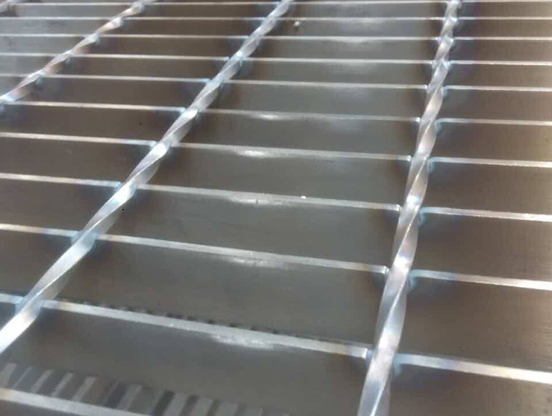 壓焊鋼格板是由負(fù)載扁鋼和橫桿(扭絞方鋼、方鋼、圓鋼、扁鋼等)按一定間距經(jīng)緯排列,在高壓電阻焊機(jī)上焊接而成原板,經(jīng)切割、切口、開孔、包邊等工序深加工而成客戶要求的成品。